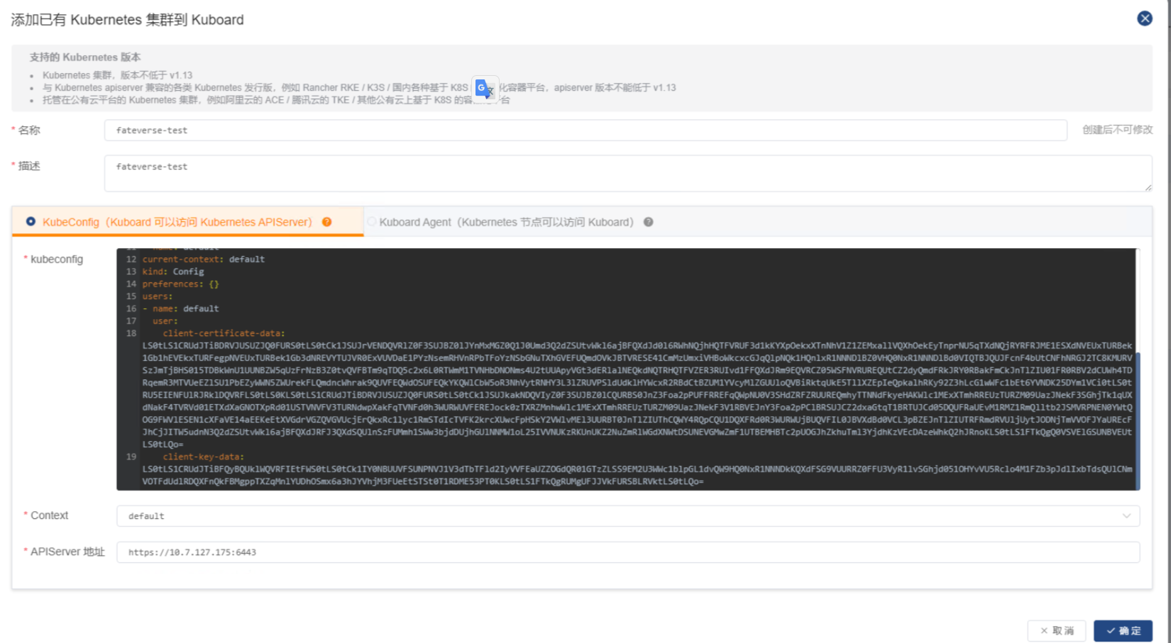 kuboard 集群导入