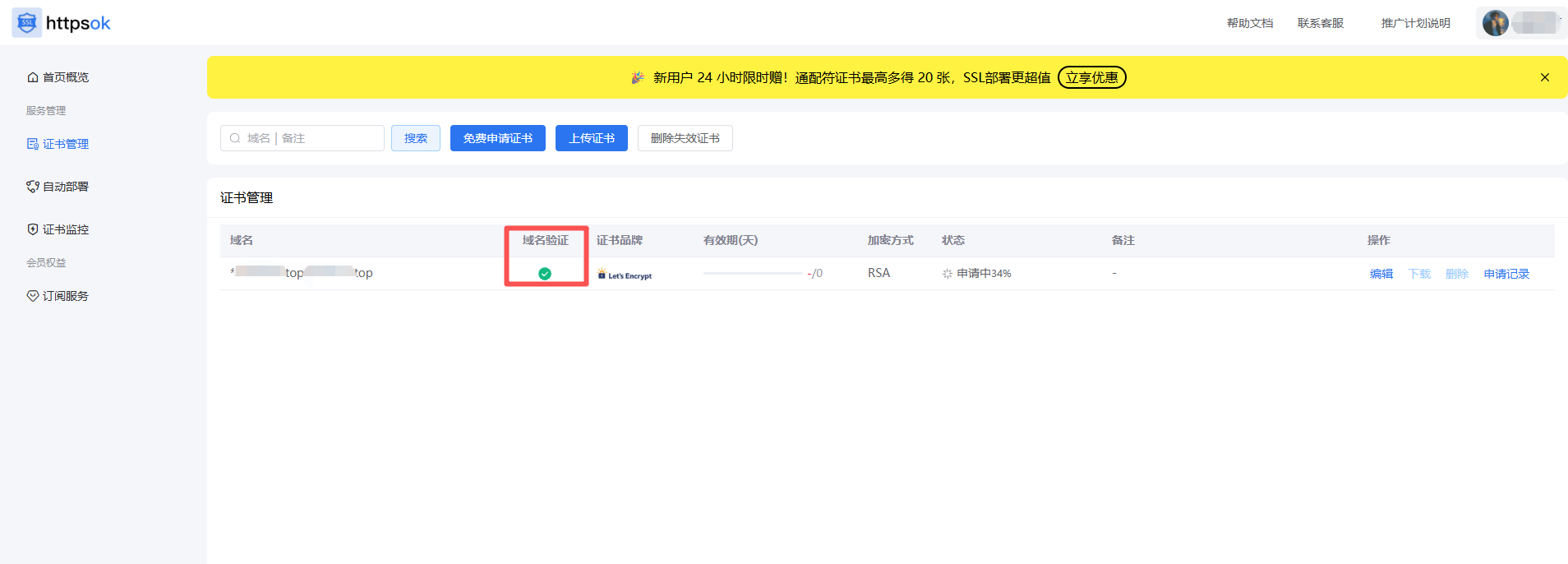 域名验证通过