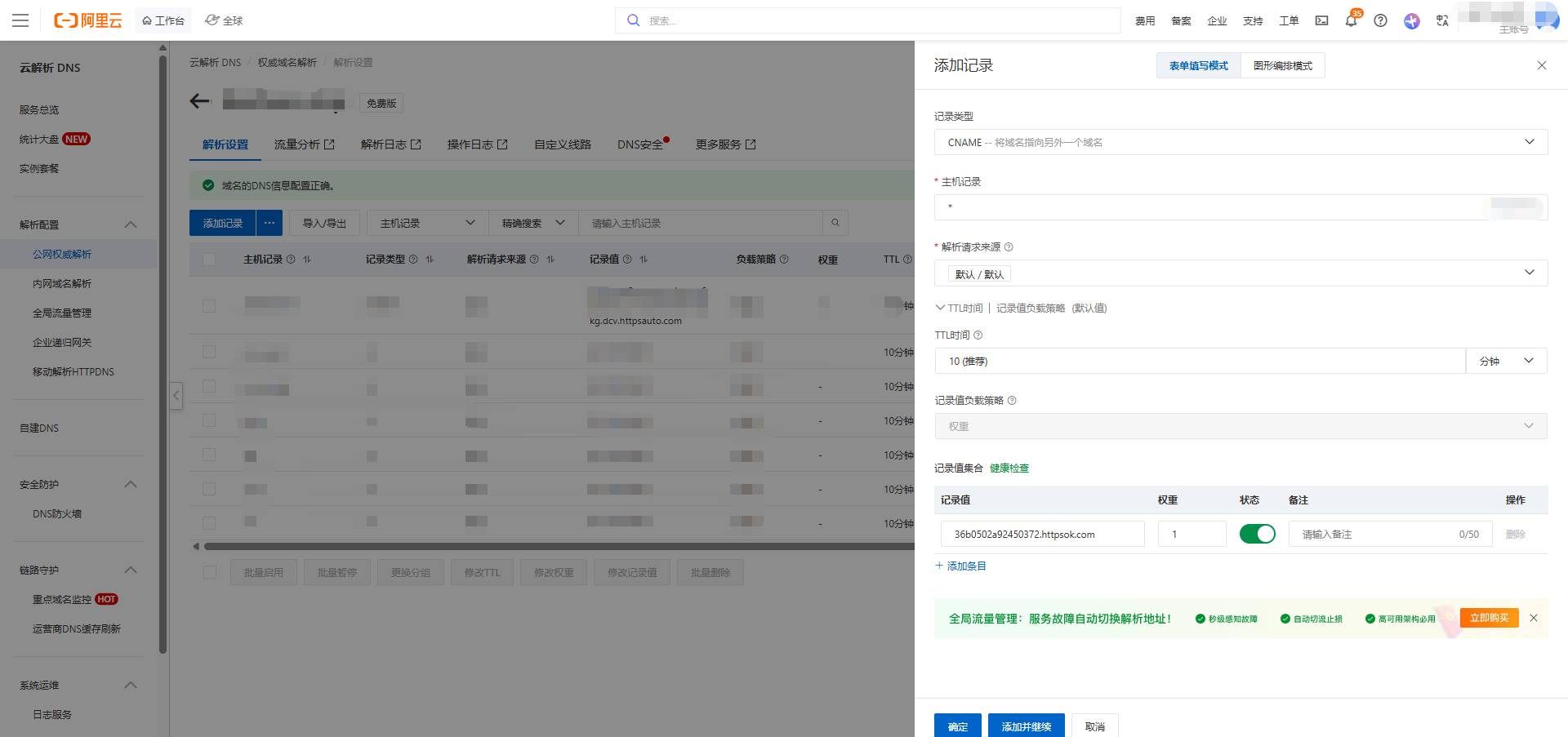 在域名服务商处添加域名解析,此处以阿里云为例,进入控制台找到域名选项,添加解析记录